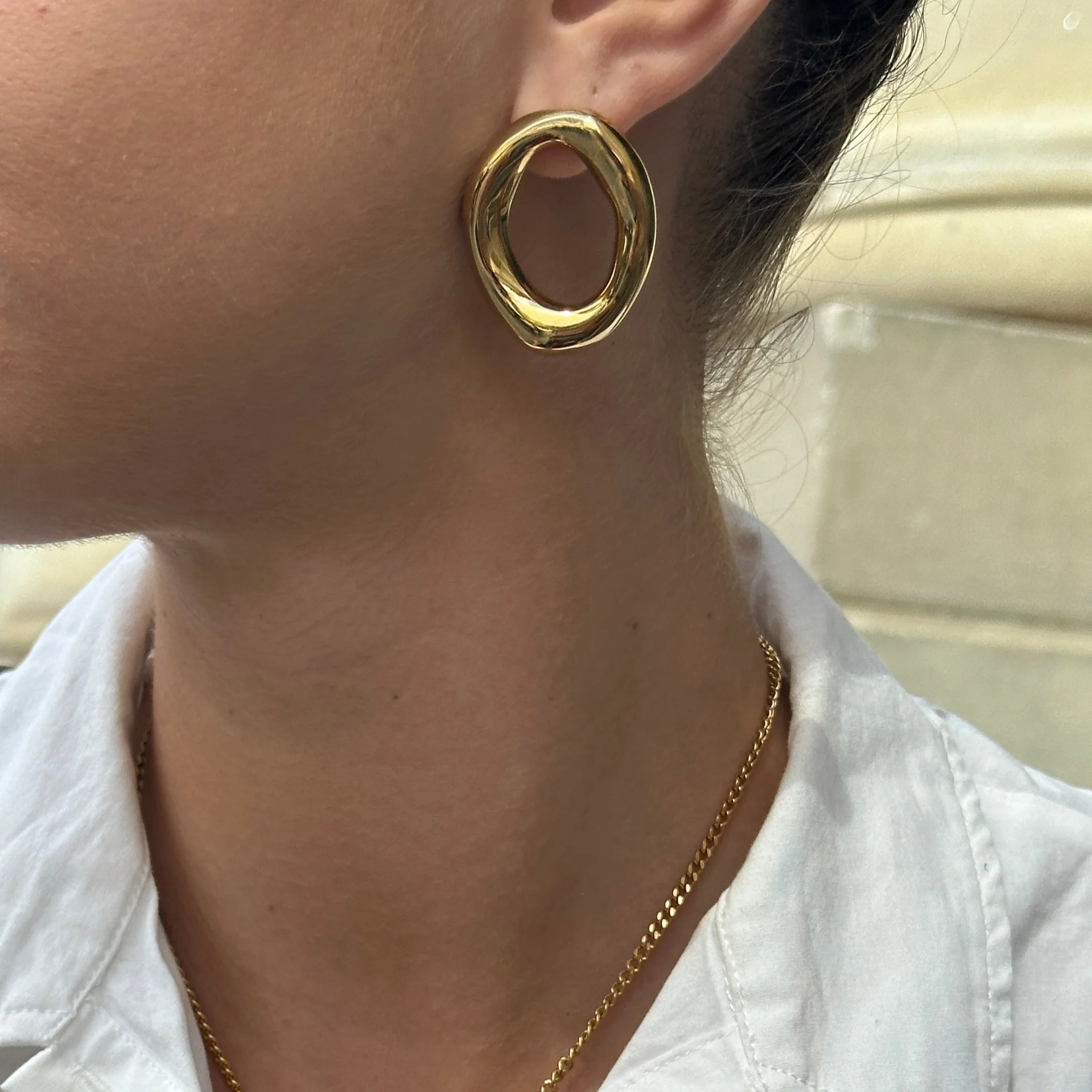Elegant yet understated, The Logan Studs echo the soft curves and sculptural beauty of the Logan Ring. Their fluid form hugs the ear with quiet confidence — a timeless touch of shine for every day.