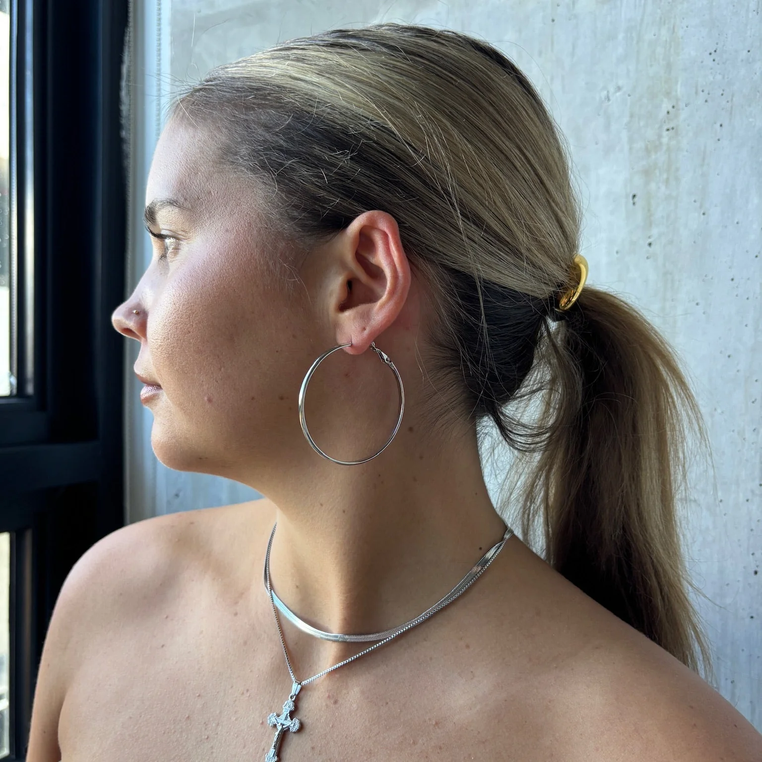 Radiant and refined, the Soleil Hoops Silver bring a sun-kissed touch to your everyday style. With their ultra-slim profile and high-shine finish, these lightweight hoops are made for effortless wear, from day to night. Available in three statement sizes to suit your mood—whether you want a subtle shimmer or bold glow.