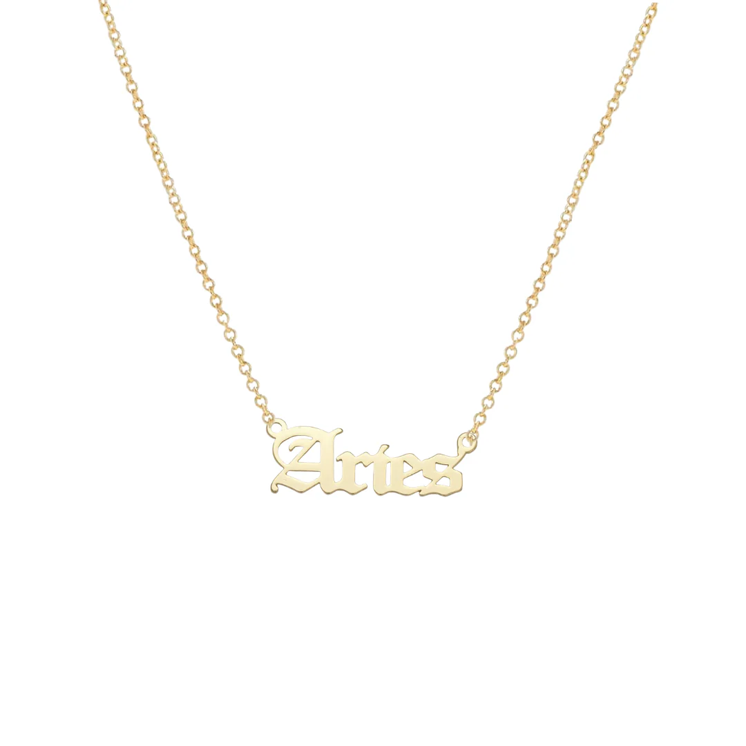 Introducing our Star Sign Necklace – a striking blend of personal expression and cosmic elegance. This necklace features a nameplate, customised with your star sign, making it a unique and meaningful addition to your jewellery collection.